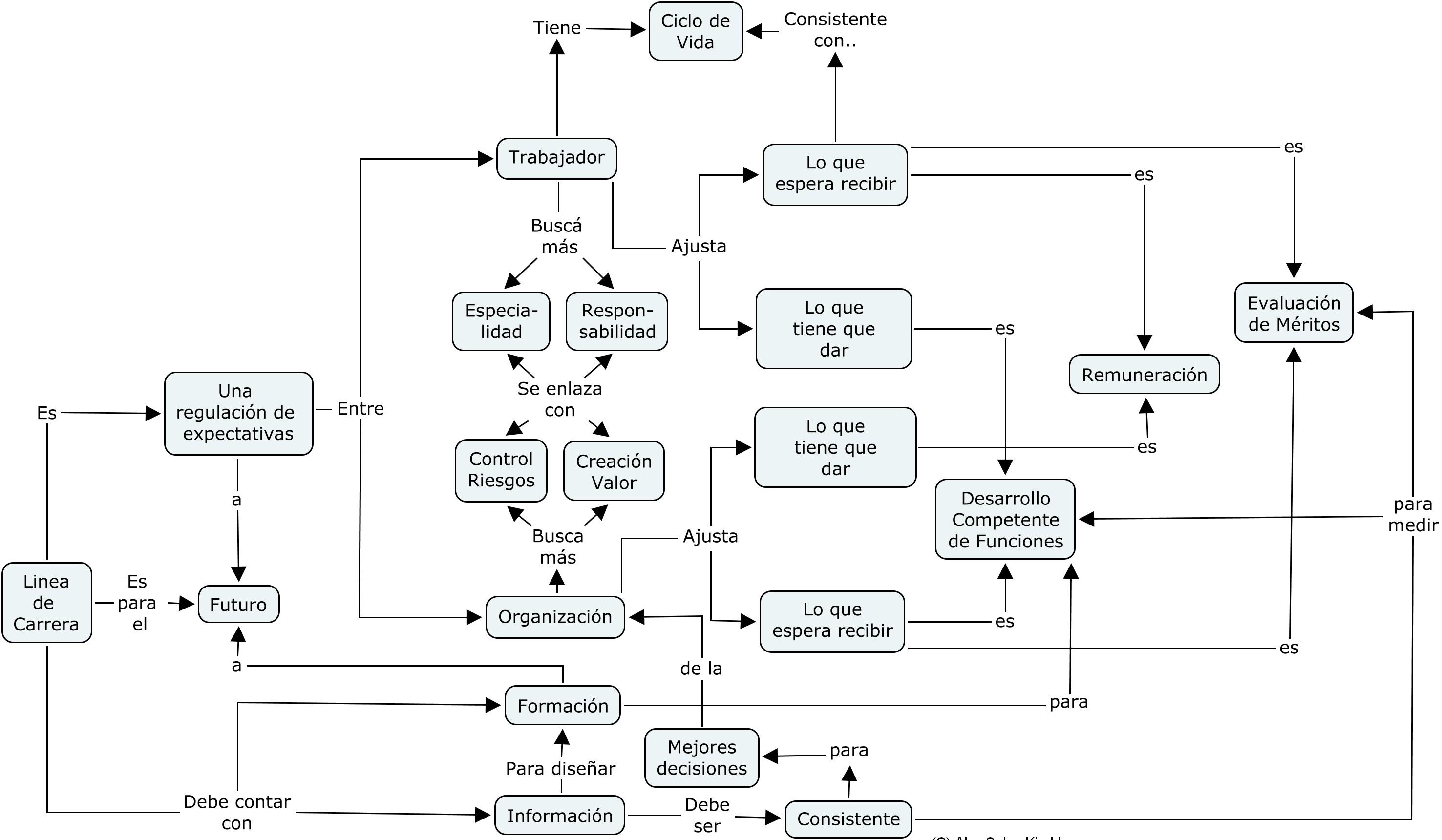 Existen muchos mitos más con respecto a las líneas de carrera, muchos de ellos ya los conoce usted como decisor o como trabajador. Lo importante es que no se le cargue a las líneas de carrera más de lo que ya tiene que resolver que es la regulación de las expectativas a largo plazo para que cada uno, trabajador y organización, puedan realizar sus inversiones y meterse con todo a sus apuestas. Para dichas expectativas hay espacio para los espacios de especialización y los espacios de responsabilidad y jerarquía: tanto trabajador como organización ganan estableciendo expectativas a este nivel.